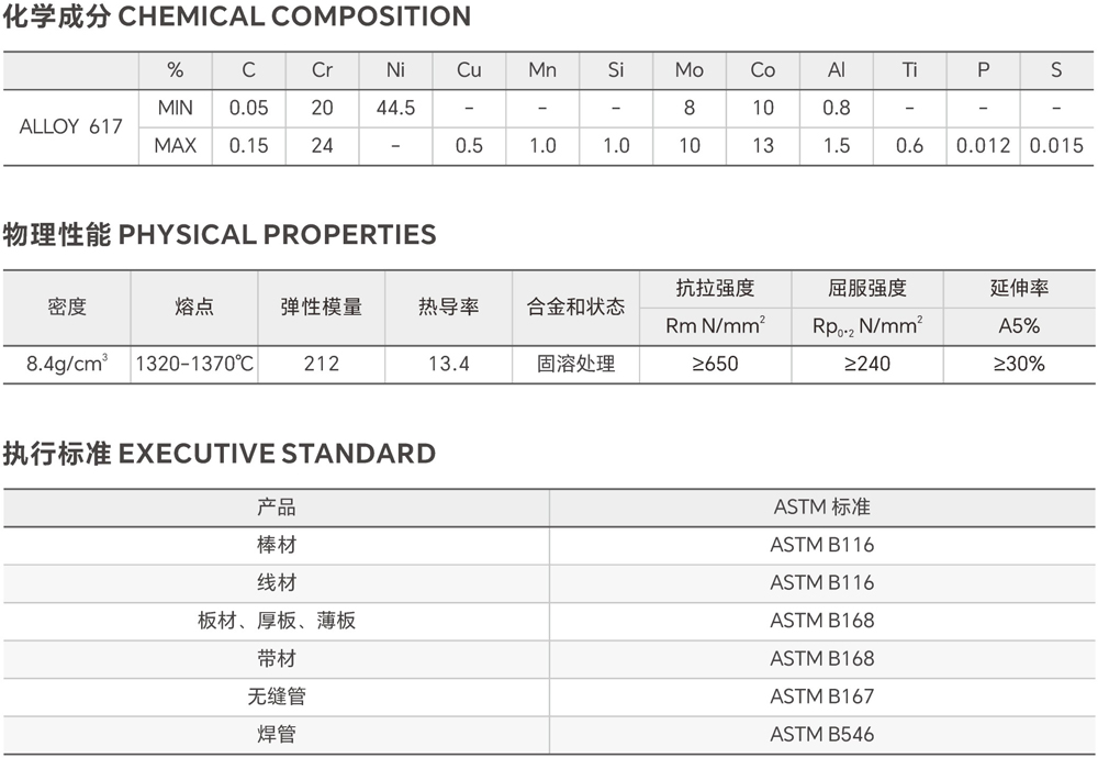The alloy has excellent corrosion resistance in hot corrosion fields such as sulfidation environment, especially in oxidation and carbonization environments with cycles up to 100°C: this corrosion resistance, combined with outstanding mechanical properties, makes this alloy particularly suitable for high-temperature fields; good instantaneous and long-term mechanical properties at temperatures to 1100°C.